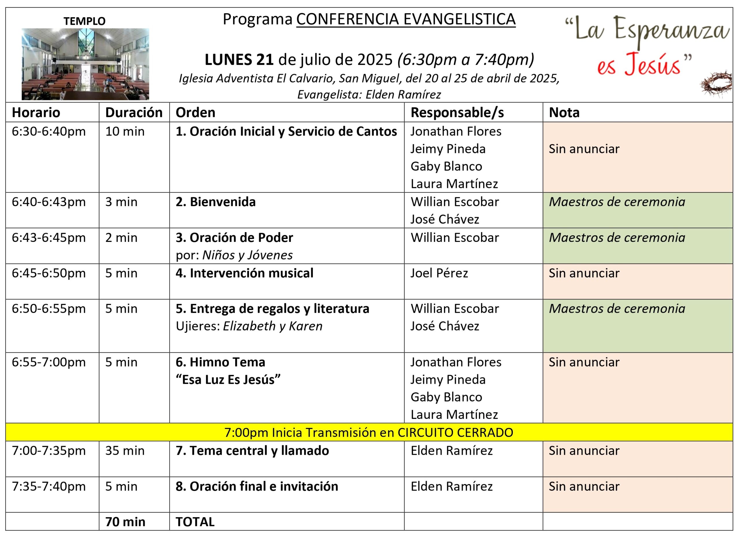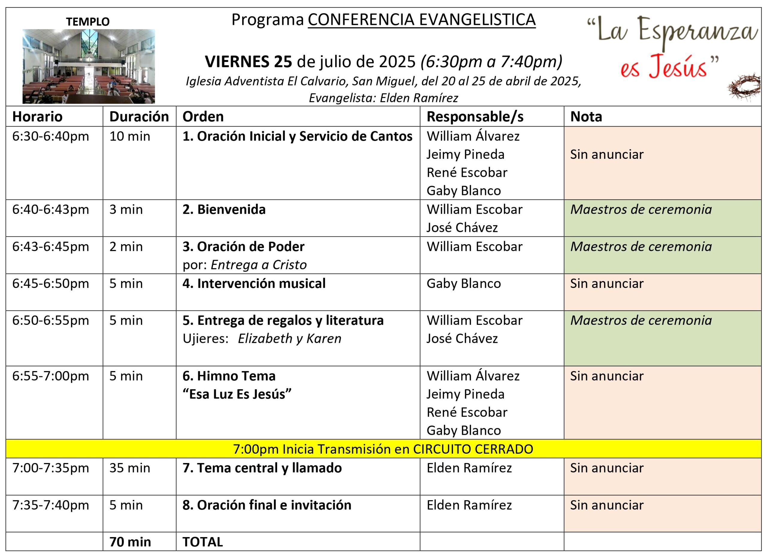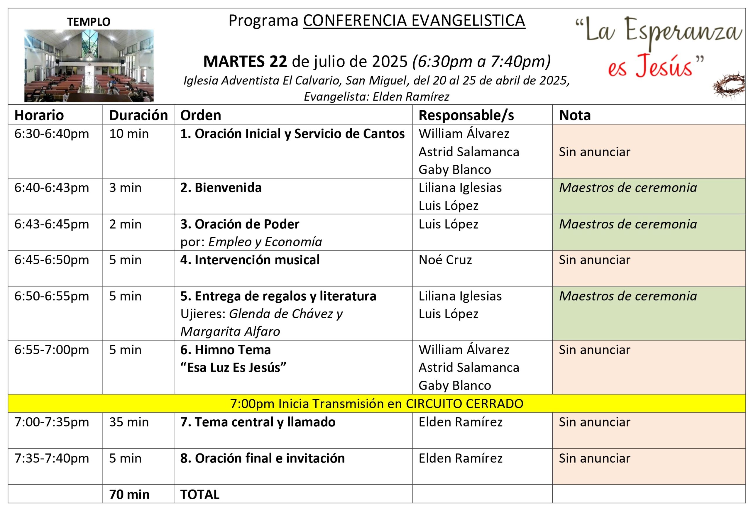 Gracias por formar parte de este esfuerzo evangelístico: “La Esperanza es Jesús”